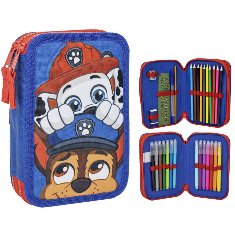 Penar complet echipat Patrula Căţeluşilor – 2 fermoare, 30 piese | Penar școlar pentru băieți