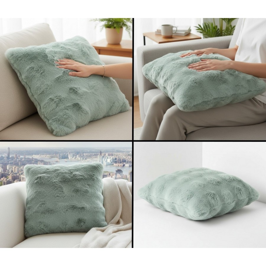 Perna decorativa, moale si catifelata, imitatie de blana, verde menta, 40x40x12 cm, model reliefat