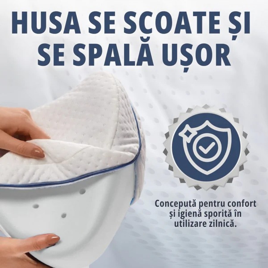 Perna ortopedica pentru genunchi și picioare din spumă cu memorie este soluția ideală pentru ameliorarea durerilor de spate, șolduri și genunchi. Proiectată ergonomic, se potrivește perfect între picioare, asigurând o aliniere corectă a coloanei vertebrale și o postură sănătoasă în timpul somnului.