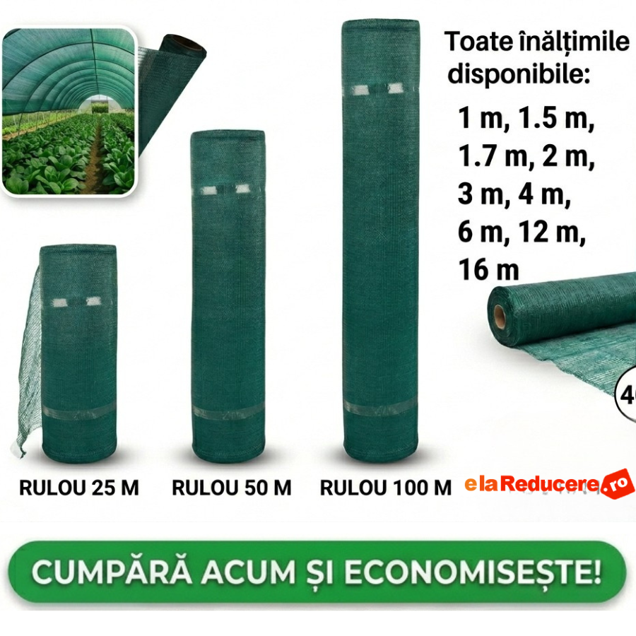 Plasa 50% Umbrire 6 m x 50 m dimensiuni, cu Tiv Si Ochiuri de Prindere