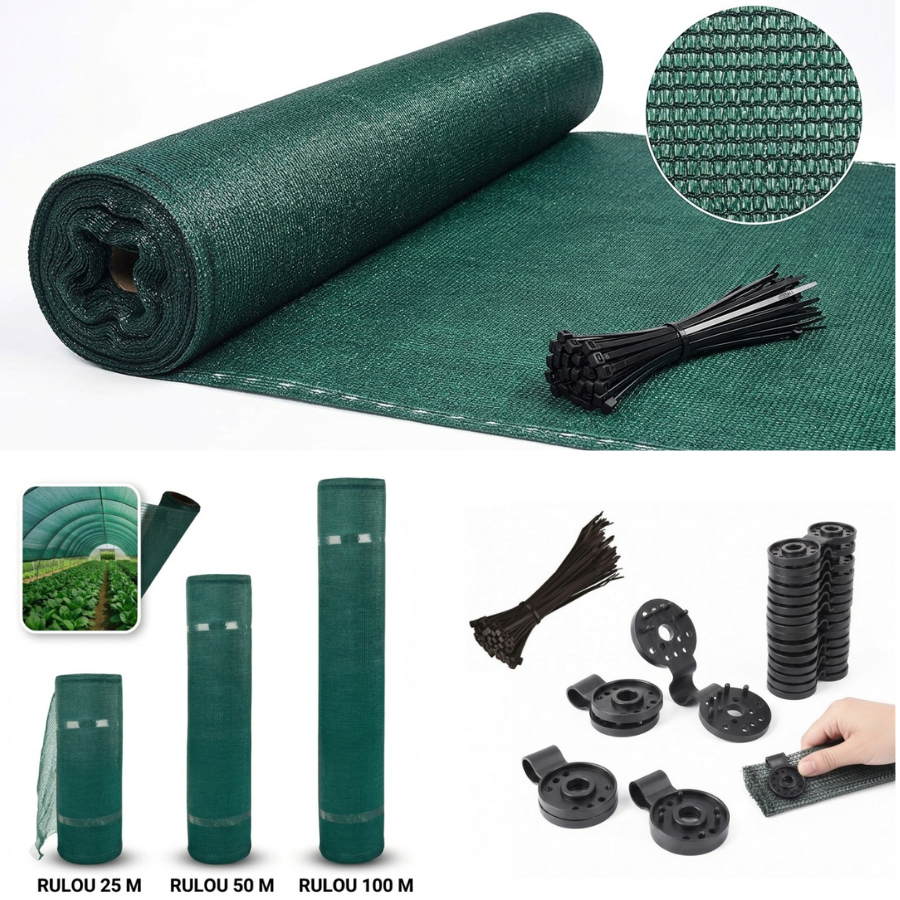 - este o plasa pentru umbrire, tesuta, fabricata din HDPE (polietilena de inalta densitate), stabilizata UV, neafectata de produsele chimice;