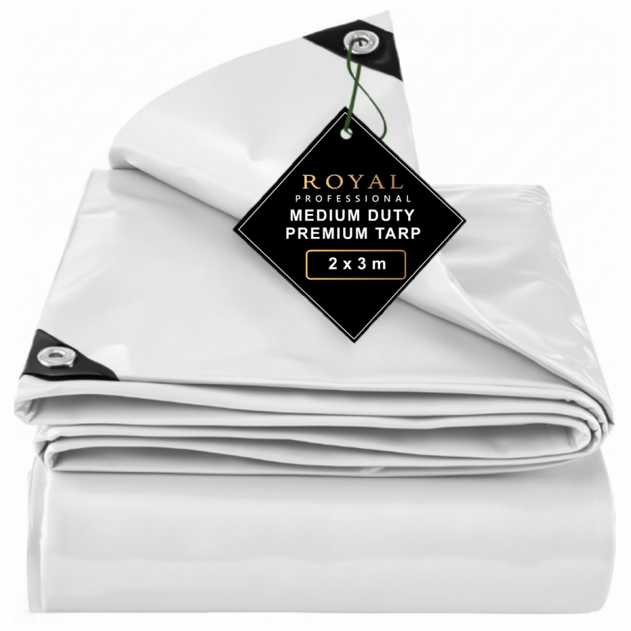 Prelata alba cauciucata 2.2 m x 3.2 m, impermeabila, cu inele, densitate 500 g/mp