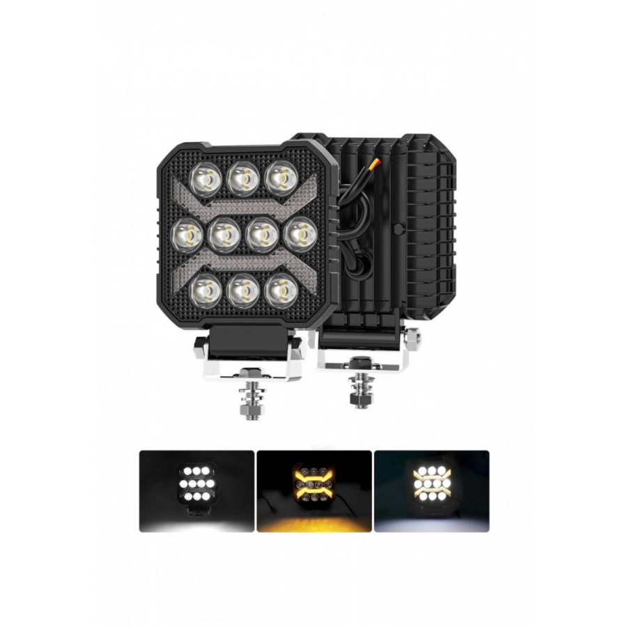 Proiector patrat LED cu DRL si flash 9-80V, 125W, alb-galben, carcasa aluminiu IP67