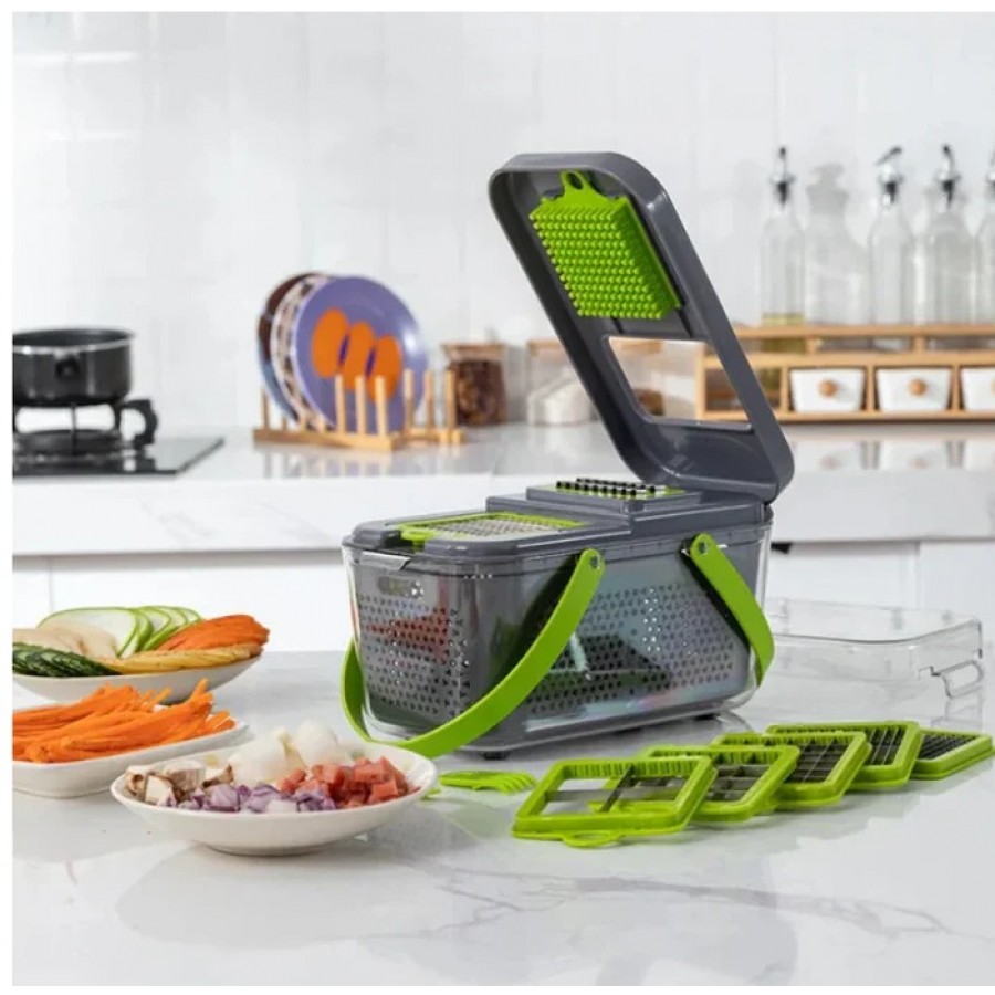 el mai recent tocator și feliător de legume multifuncțional 22 ÎN 1 toacă, cubulețe, feliază sau răzește! Acest tocator de legume este un instrument practic de bucatarie, tocatorul de legume ofera functii multiple intr-un singur gadget de bucatarie extrem de versatil. Tocatorul de legume cu ceapa este fabricat din material plastic ABS de calitate alimentara fara BPA de inalta calitate, durabil si rezista mult timp. Lamele rezistente din oțel inoxidabil sunt suficient de ascuțite pentru a tăia majoritatea tipurilor de legume și fructe.