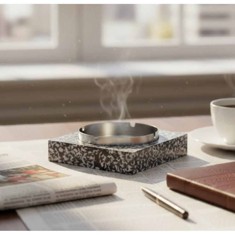 Aceasta scrumiera 2 in 1 combina eleganta si functionalitatea, oferind doua optiuni intr-un singur produs: o scrumiera din piatra, rezistenta si stabila, si o scrumiera metalica detasabila, usor de curatat.