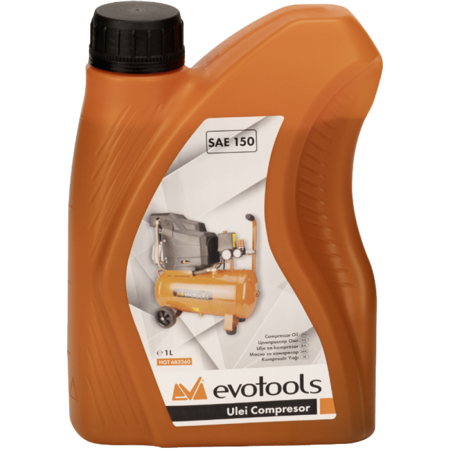 Uleiul pentru compresor SAE 150 Evotools este special conceput pentru a lubrifia eficient compresoarele rotative și cu piston de capacitate mică și medie. Este ideal pentru echipamente care funcționează la o presiune a aerului de până la 10 bari.