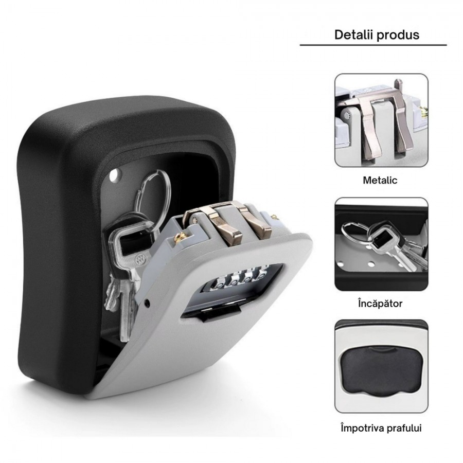 Etichete: Seif Manual pentru Chei, Cifru Mecanic, Cutie Securitate, Antiefractie, Compact, Negru Gri, Unibox, Mobilier, Articole pentru casa