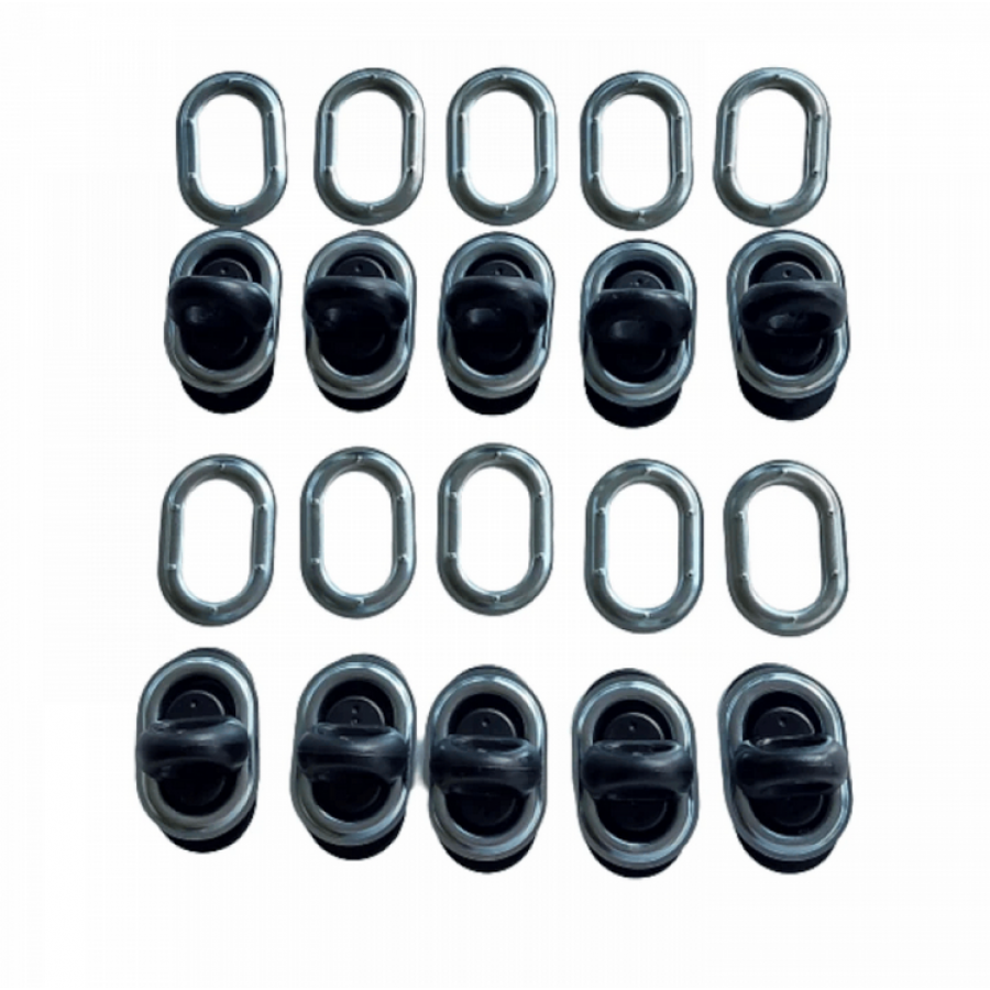Setul conține 10 bride rotative ( butoni) din pvc antracit (gri inchis) și 10 capse ovale saibe incluse 42 mmx22 mm zincate antirugina.