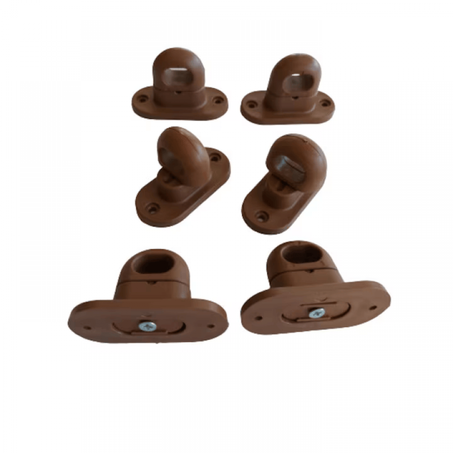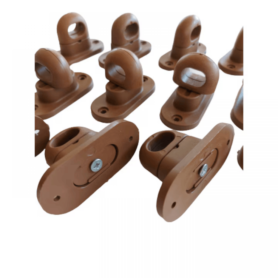 Setul conține 10 bride rotative ( butoni) din pvc maro și 10 capse ovale saibe incluse 42 mmx22 mm zincate antirugina.