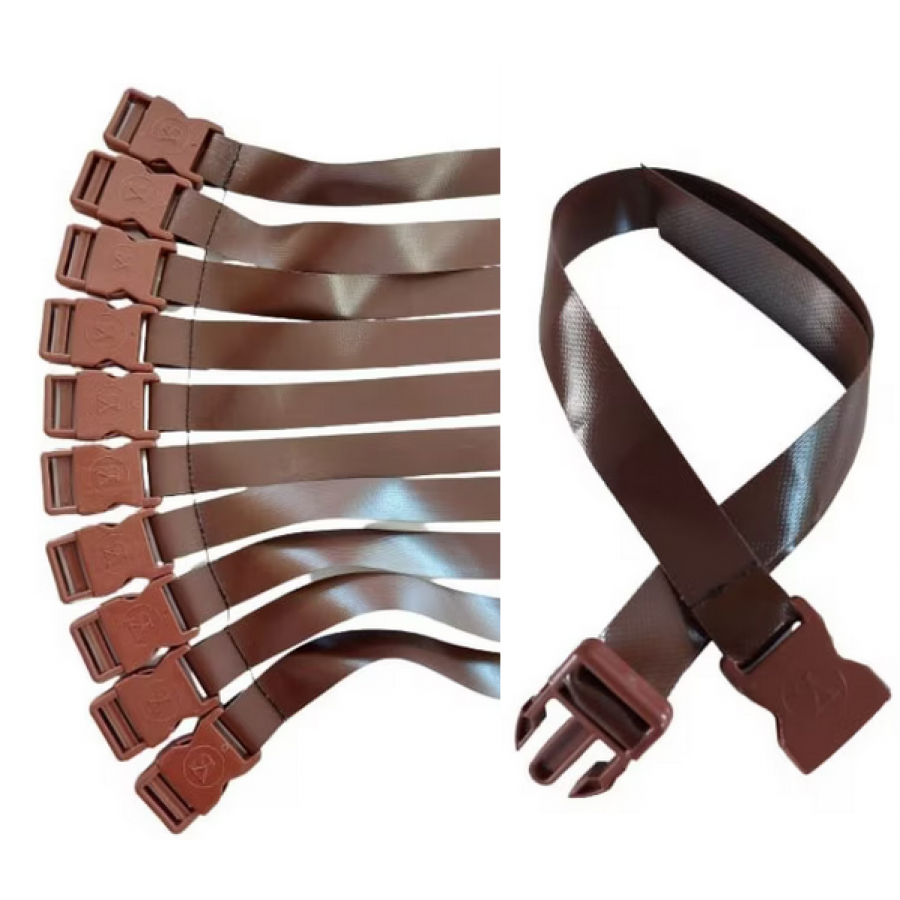 Asigură-ți terasa, foișorul sau spațiul exterior cu curelusele maro cu clips Trident, special concepute pentru prinderea foliei de protecție împotriva vântului, ploii și zăpezii. Cu o lățime de 2,5 cm și o lungime reglabilă de până la 90 cm, aceste curele oferă o soluție practică și elegantă pentru fixarea eficientă a foliei pe structură.