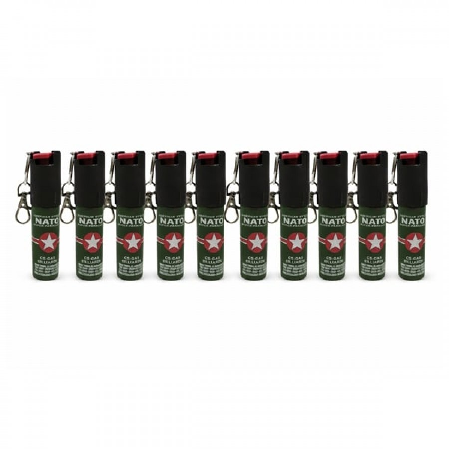 Set 10 x Mini Spray Paralizant NATO, DEPOX®, tip breloc, propulsie jet, 20 ml
