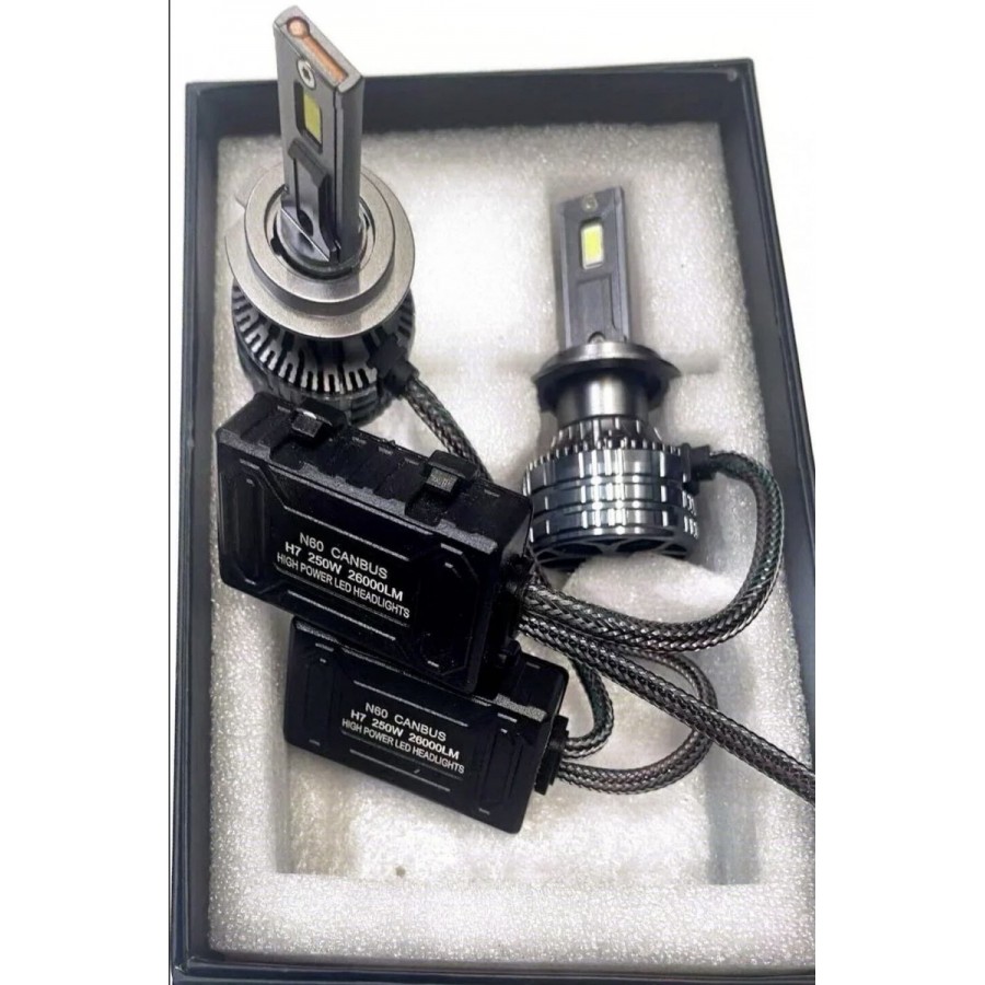 Set 2 leduri h7 lumina alb rece 6000k , 12v, 250w, 26.000lm, canbus