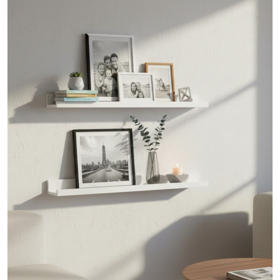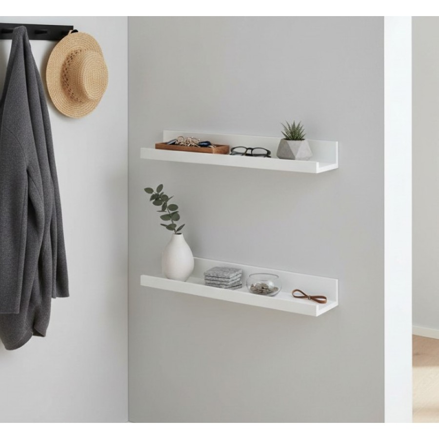 Set 2 polite perete, MDF, cu feronerie inclusa – montaj usor si organizare practica, alb, 55x12 cm