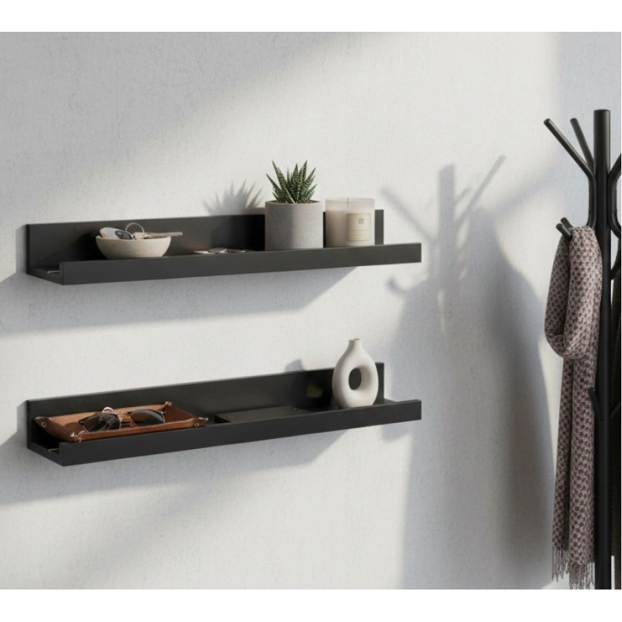 Set 2 polite perete, MDF, feronerie inclusa – montaj usor si organizare practica, negru, 55x12x7 cm