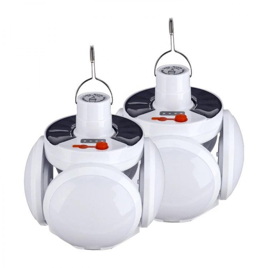 Set 2 x Bec cu panou solar si acumulator, 5 trepte de iluminat