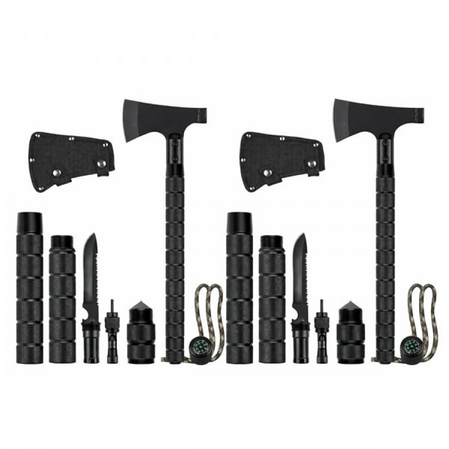 Setul conține două topoare multifuncționale complete, ideale pentru utilizare personală sau pentru echipamente de rezervă în drumeții și camping.