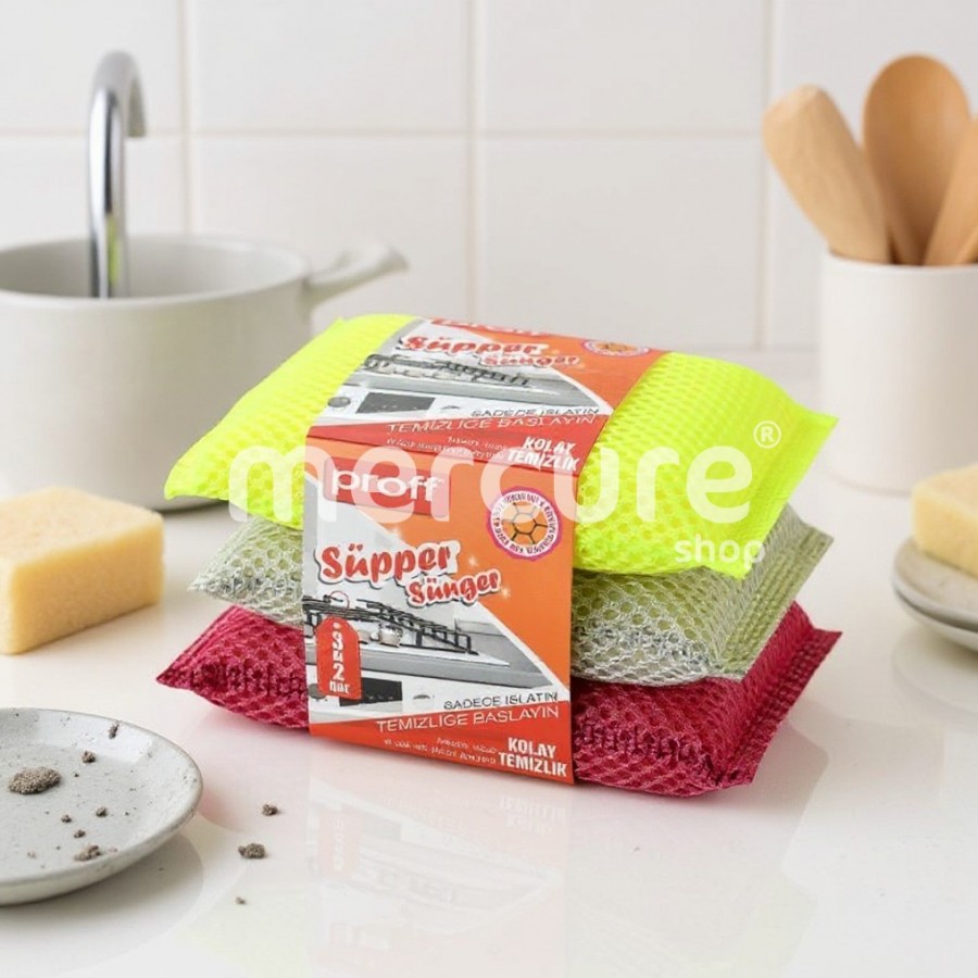 Rezistenți și durabili, bureții au o suprafață cu textură abrazivă ce elimină murdăria persistentă.