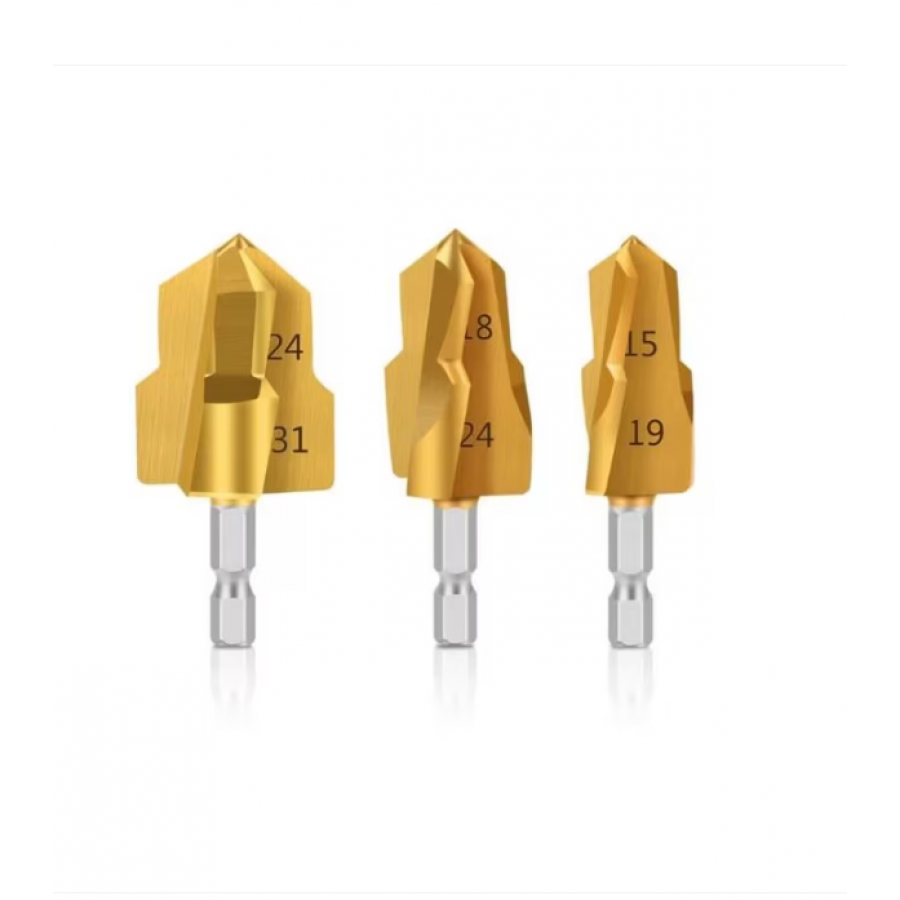 Set 3 burghie HSS otel, auriu, pentru tevi MMP/PVC/PPR