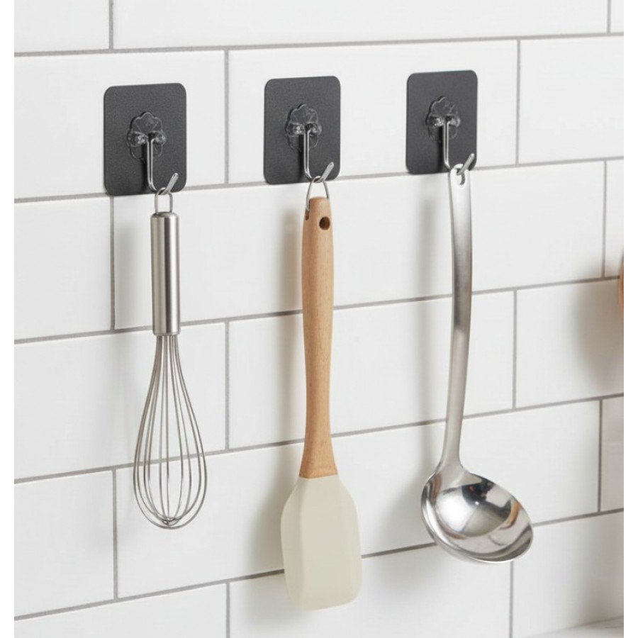 Etichete: Set 3 carlige autocolante, model floare, negru, 6x6 cm, utilizare universala, Bucatarie si Servire, Articole pentru casa