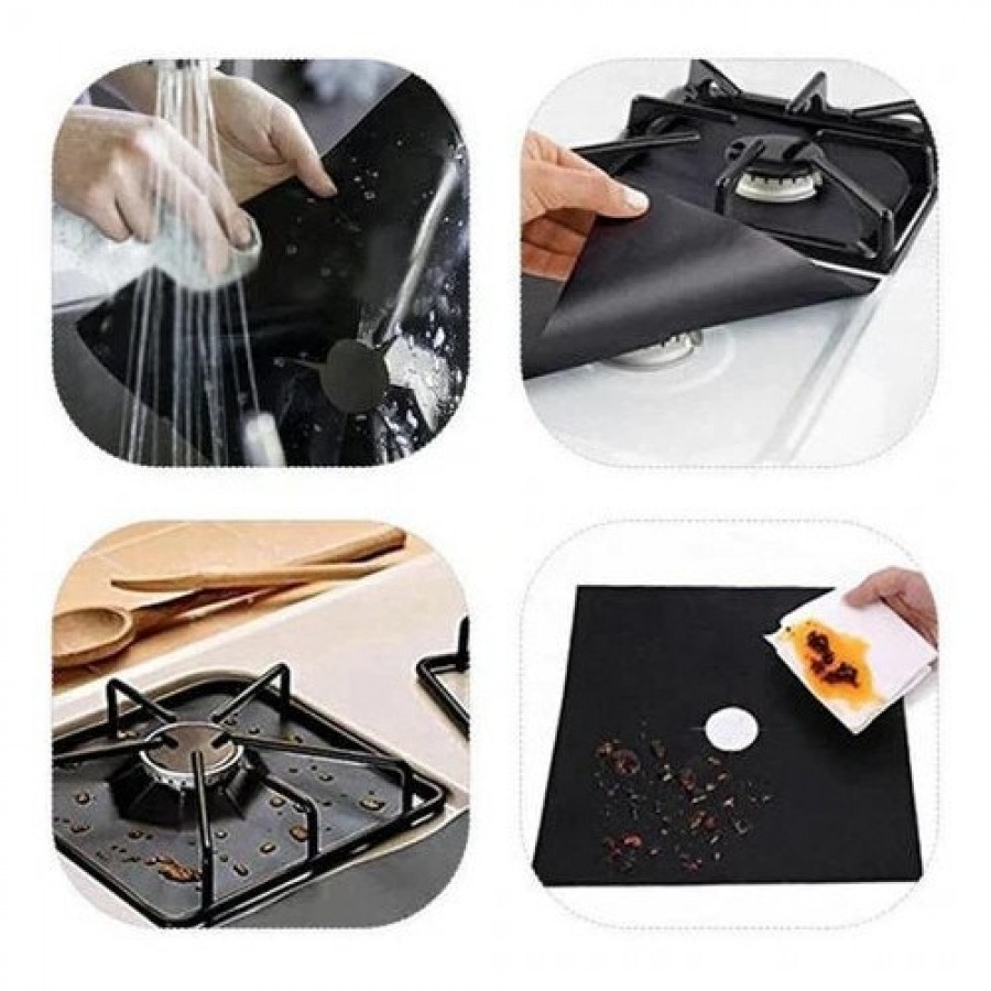 Set 4 folii reutilizabile, detasabile, protectie pentru aragaz, usor de spalat, din teflon, negru