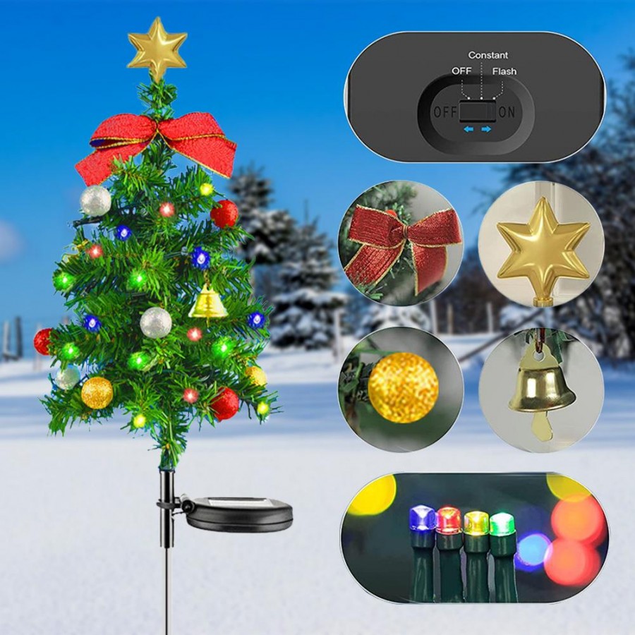 Lampa solara pentru gradina cu LED, in forma de brad, adauga un efect decorativ placut si elegant oricarui spatiu exterior. Cu o inaltime de 68 cm si lumina multicolora, aceasta lampa este ideala pentru curti, alei, terase sau gradini. Este prevazuta cu tarus pentru fixare usoara in sol si este complet waterproof, rezistenta la ploaie si conditii meteo variate. Functioneaza cu energie solara, oferind lumina ecologica si economie de energie.