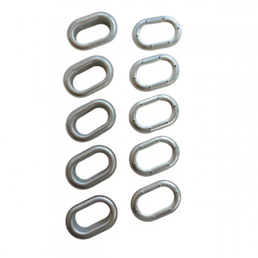 Set 50 capse ovale cu saibe incluse, sunt zincate antirugina, se monteaza pe Folia transparenta Cristal pentru inchiderea teraselor, foisoarelor, balcoanelor inclusiv prelate Tiruri, sere si solarii cu bride sau butoni rotativi