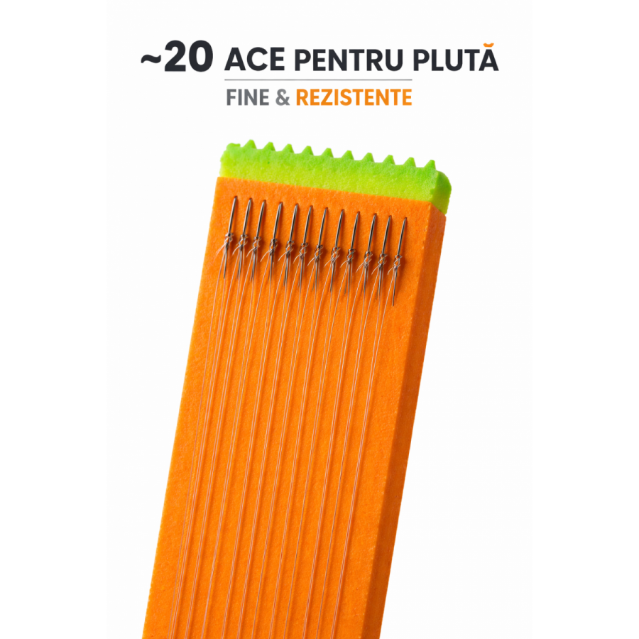 Set de ace dedicat pescuitului la plută staționar, ideal pentru monturi fine și schimbări rapide. Include două dimensiuni esențiale (Nr.10 și Nr.8) pentru adaptare în funcție de pește și condiții. Suportul EVA asigură organizare eficientă și protecție.
