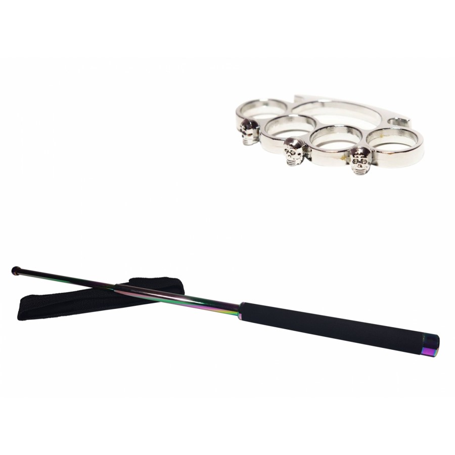 Set baston telescopic din otel, argintiu, 64 cm + box craniu argintiu