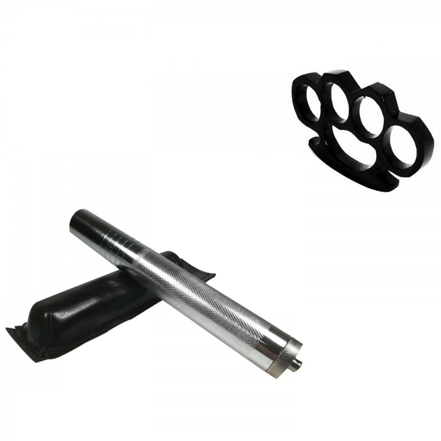 Set baston telescopic din otel, argintiu, 64 cm + box negru 0.5 cm grosime