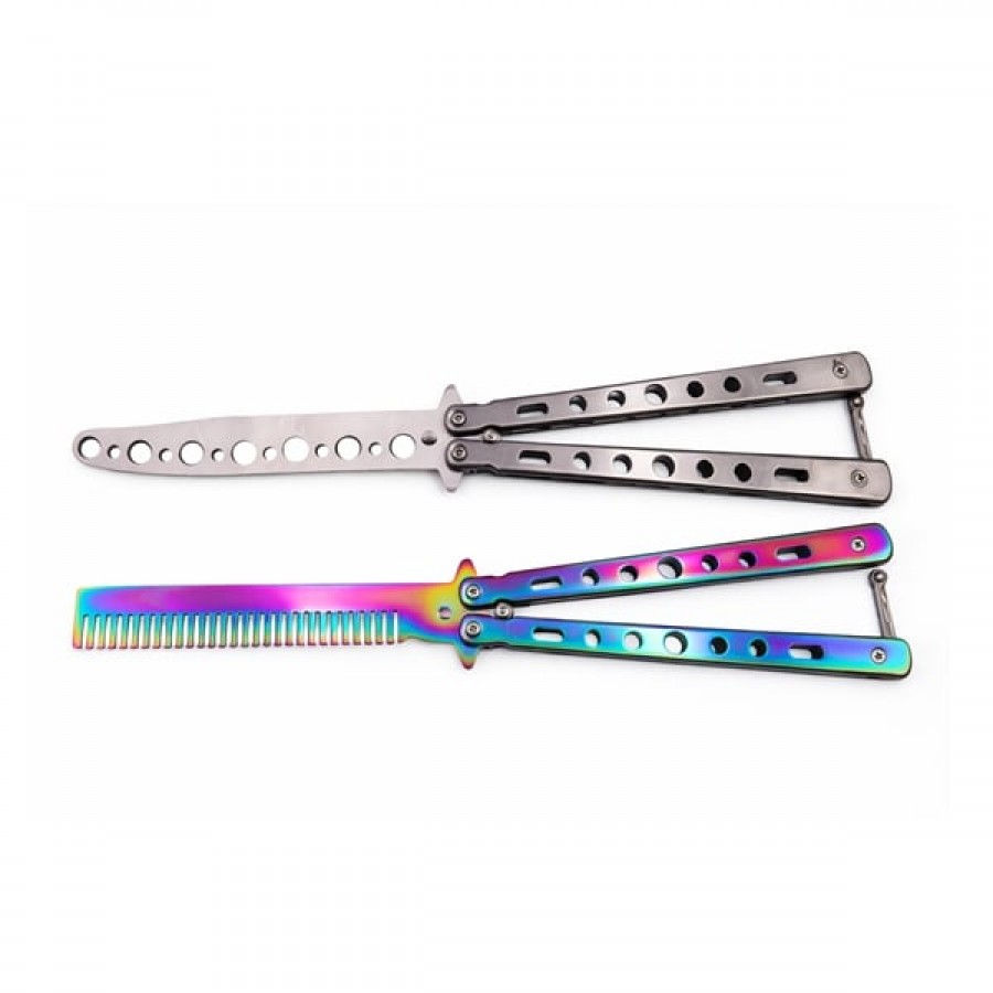 Etichete: Set briceag fluture de antrenament + pieptene tip fluture, otel rezistent, 22.5 cm