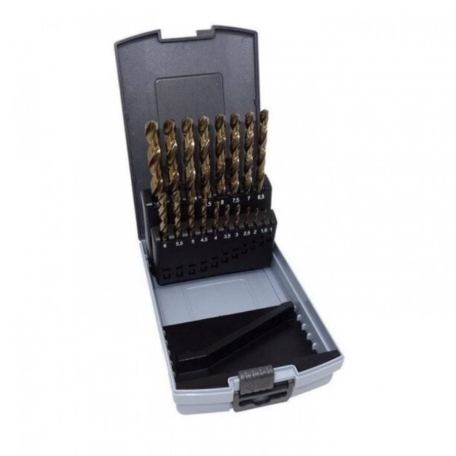 Setul conține 19 burghie spiralate, acoperind dimensiuni de la 1 mm până la 10 mm, organizate într-o cutie metalică rezistentă, pentru depozitare și transport sigur.