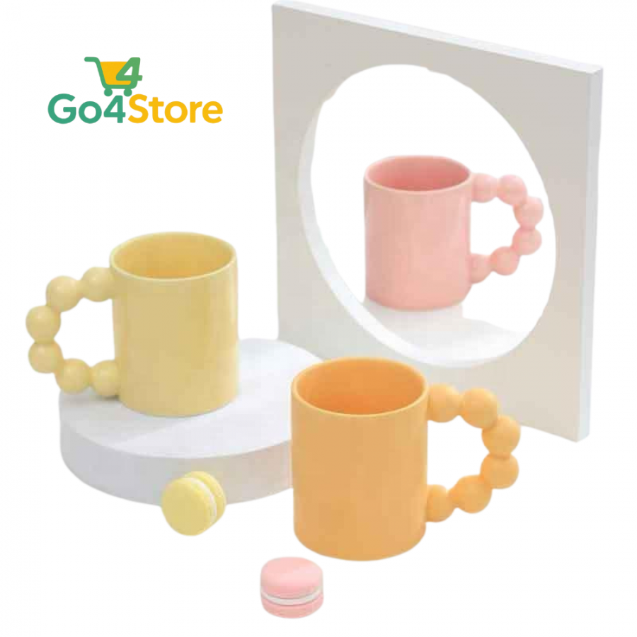 Această cană ceramică cu mâner tip bilă îmbină un design minimalist cu un detaliu inedit, oferind un plus de confort și originalitate fiecărei utilizări.