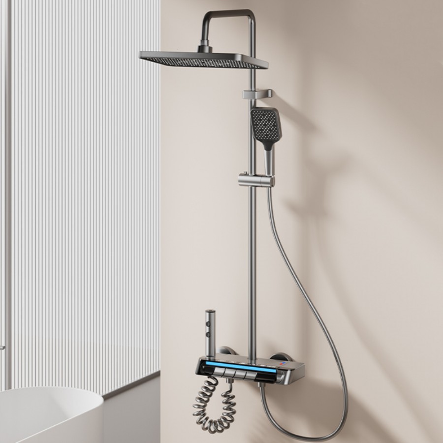 Set Coloana Dus cu Termostat, Afisaj Temperatura LED, 4 Functii Piano, Gri Grafit, Tip Ploaie