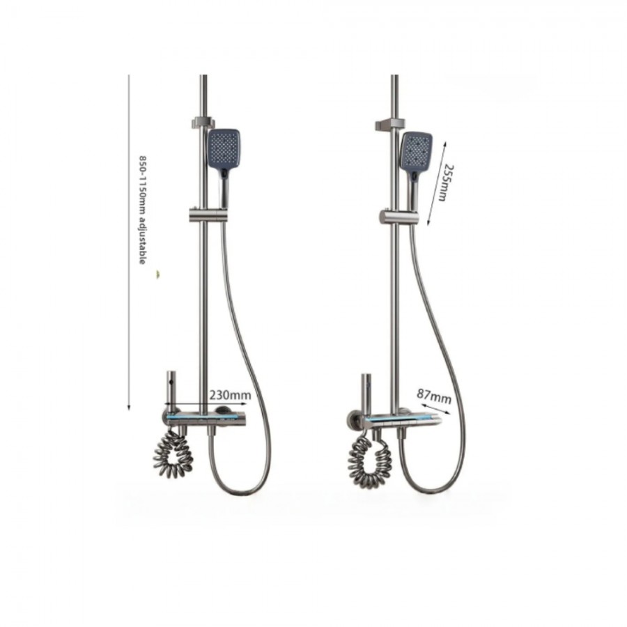 Set Coloana Dus Digital, Termostat, LED, Afisaj Temperatura, 4 Functii, Tip Ploaie, Grafit, Unibox