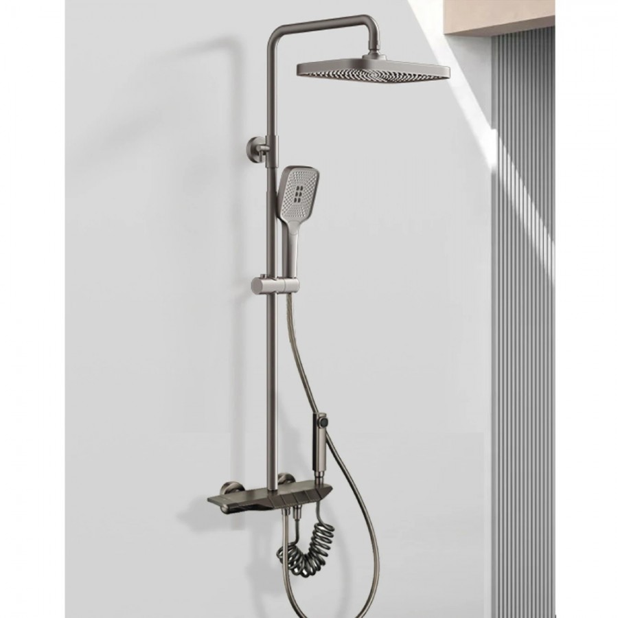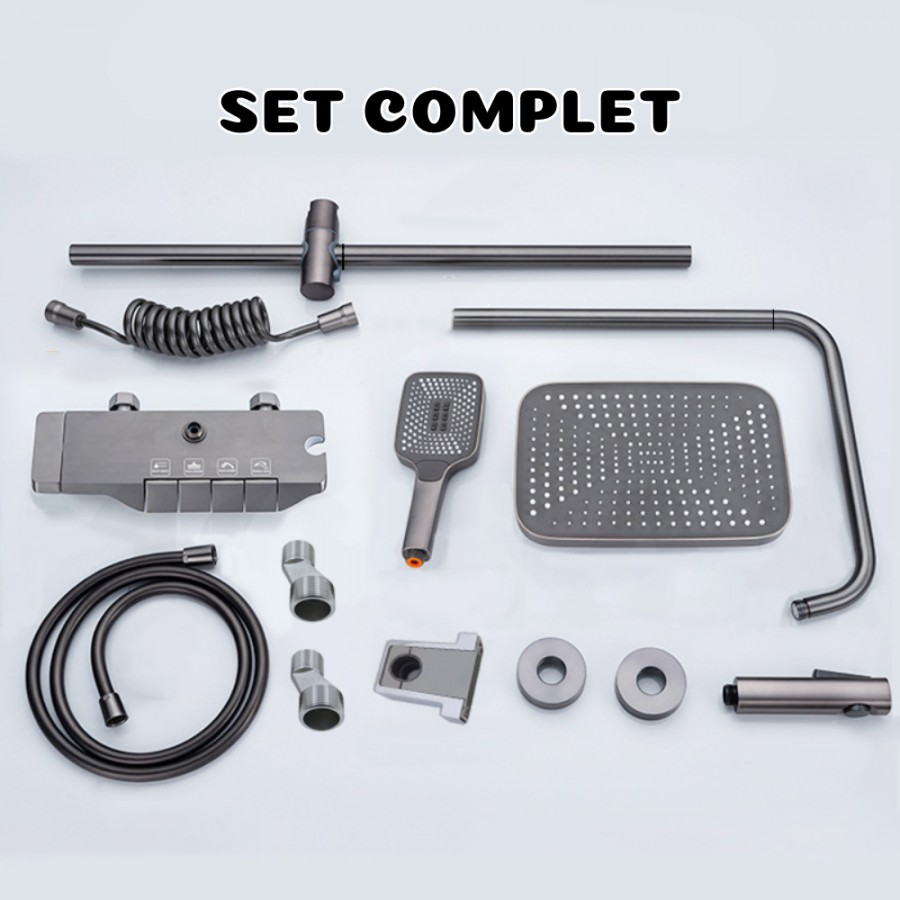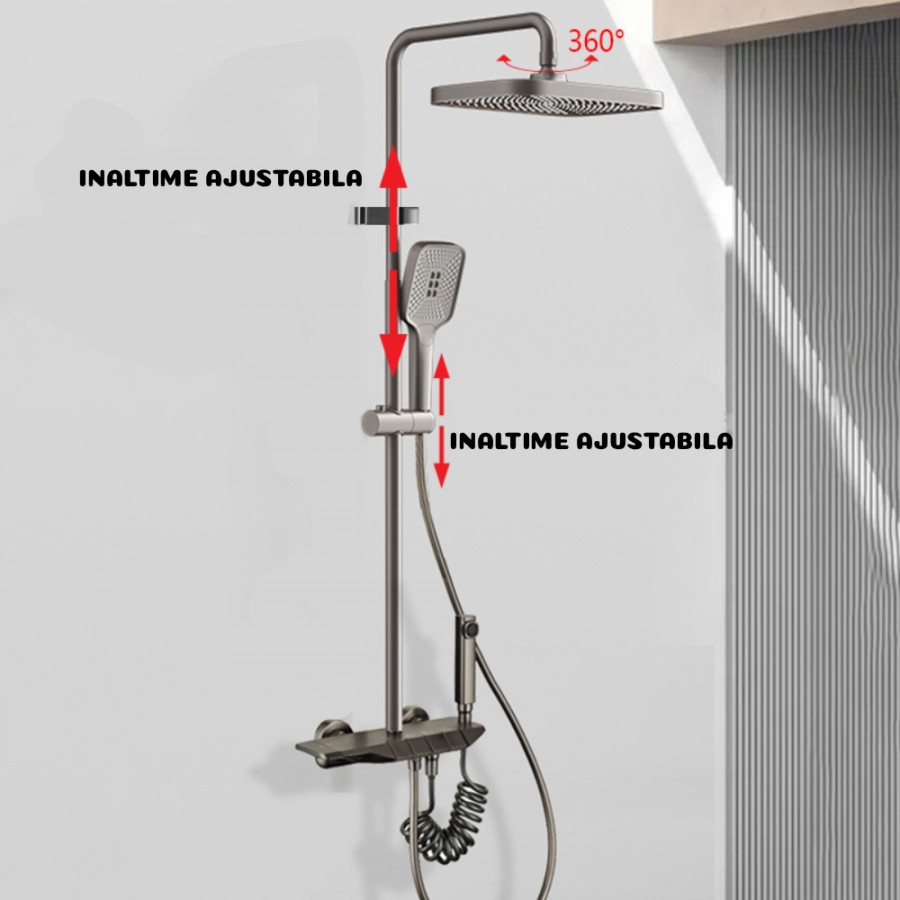 Set Coloana Dus Premium, Alama Cupru, 4 Functii, Butoane Piano, Gri Grafit, Tip Ploaie