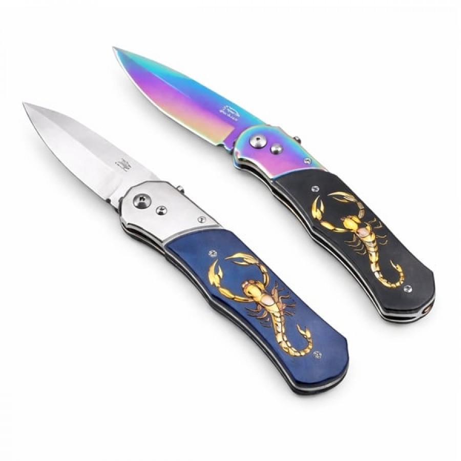 Set de doua cutite automate, DEPOX®, 24 cm,husa inclusa, maner decorativ, multicolor