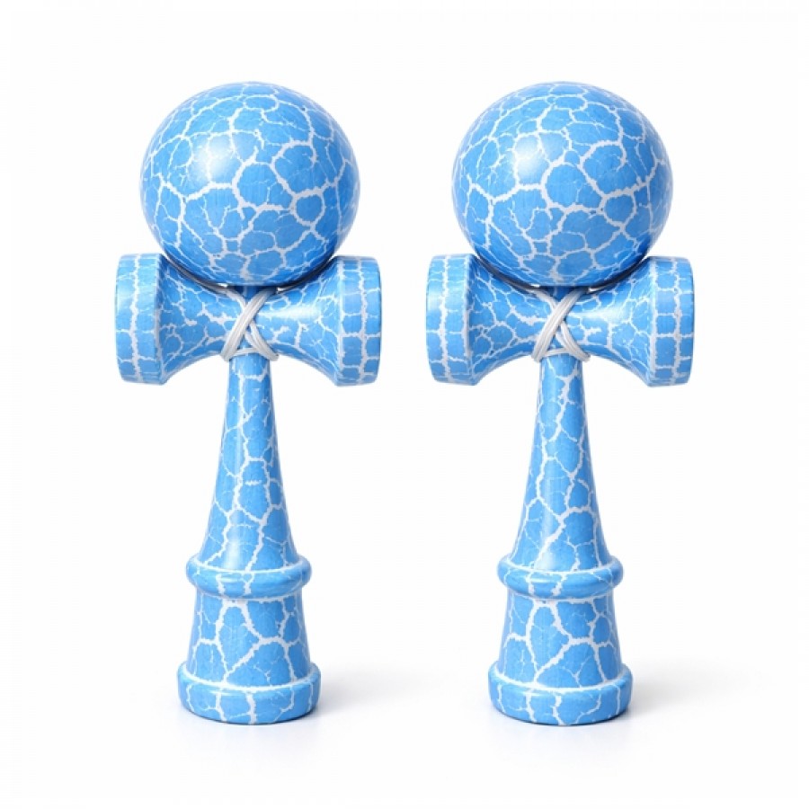 Kendama X Originala, Profesionala, DEPOX®, Cracked, Lemn, 18 cm, Albastru/Alb