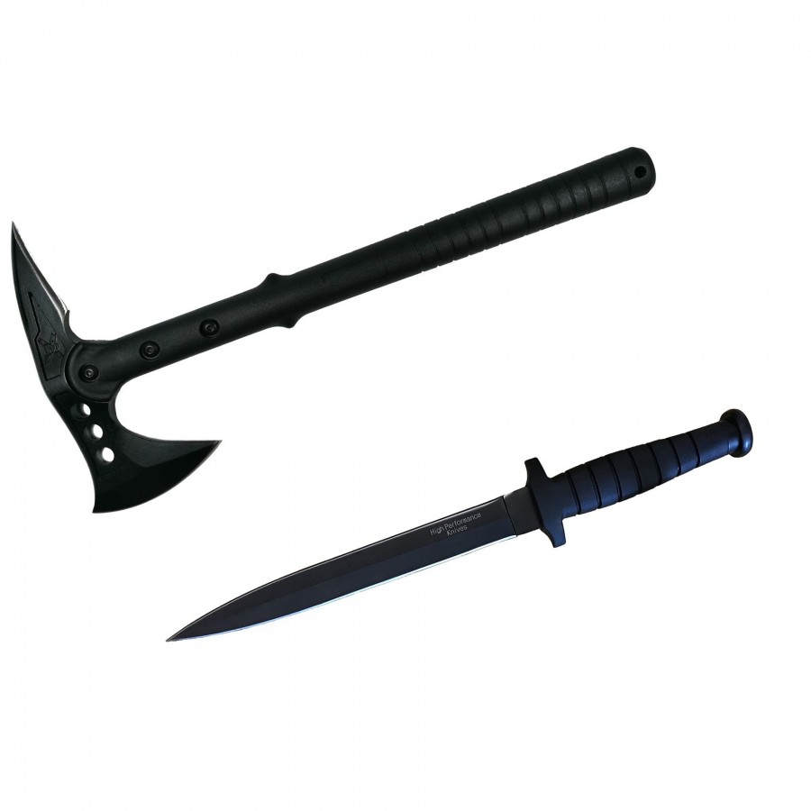 Etichete: Set de supravietuire Double Trouble, topor si cutit cu tais dublu, otel inoxidabil, ne