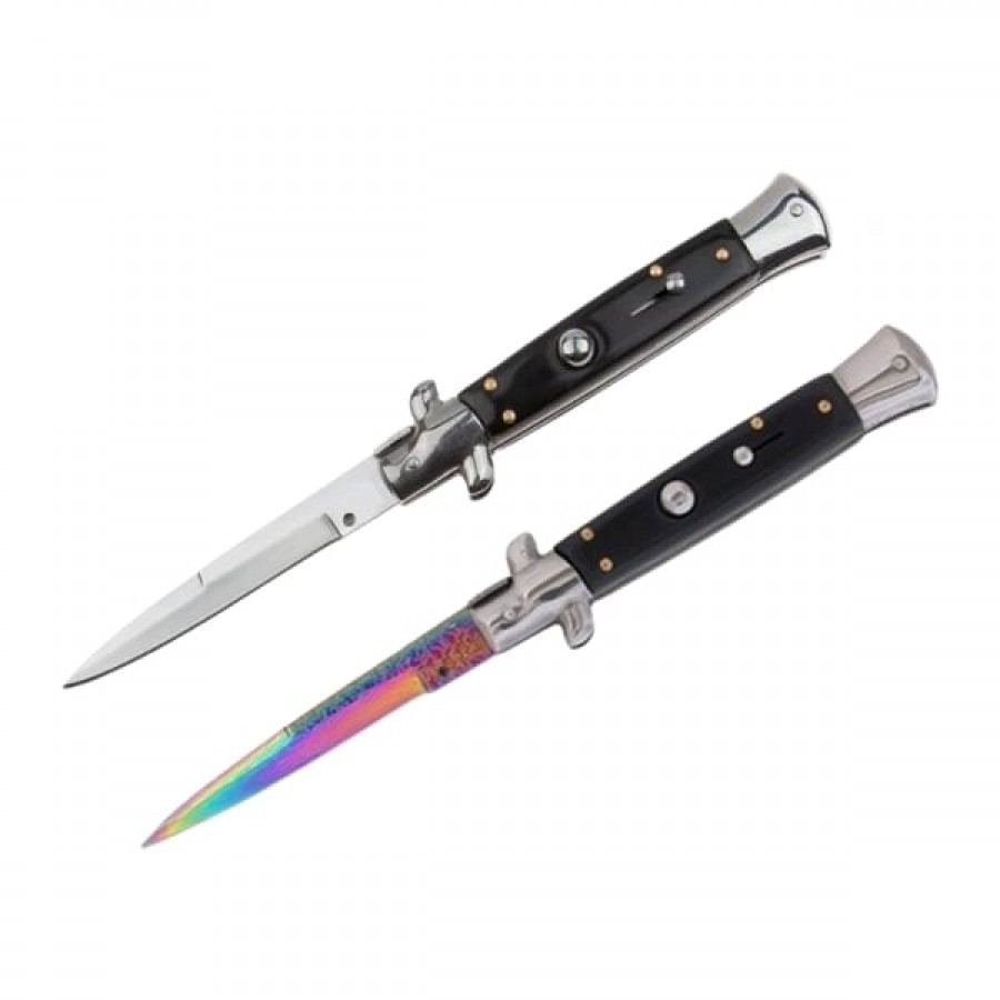 Set format din două cuțite pliabile cu arc, inspirate de emblematicele cuțite siciliene italiene, recunoscute la nivel mondial pentru designul lor clasic și mecanismul rapid de deschidere. Modelele sunt apreciate pentru aspectul distinctiv și funcționalitatea practică.