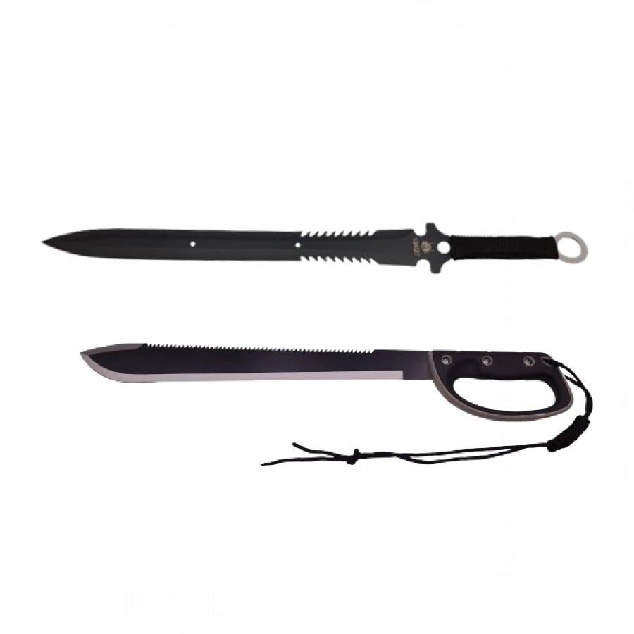 Set doua sabii vanatoare, maner metal, 81 cm/50 cm, negru, teaca inclusa