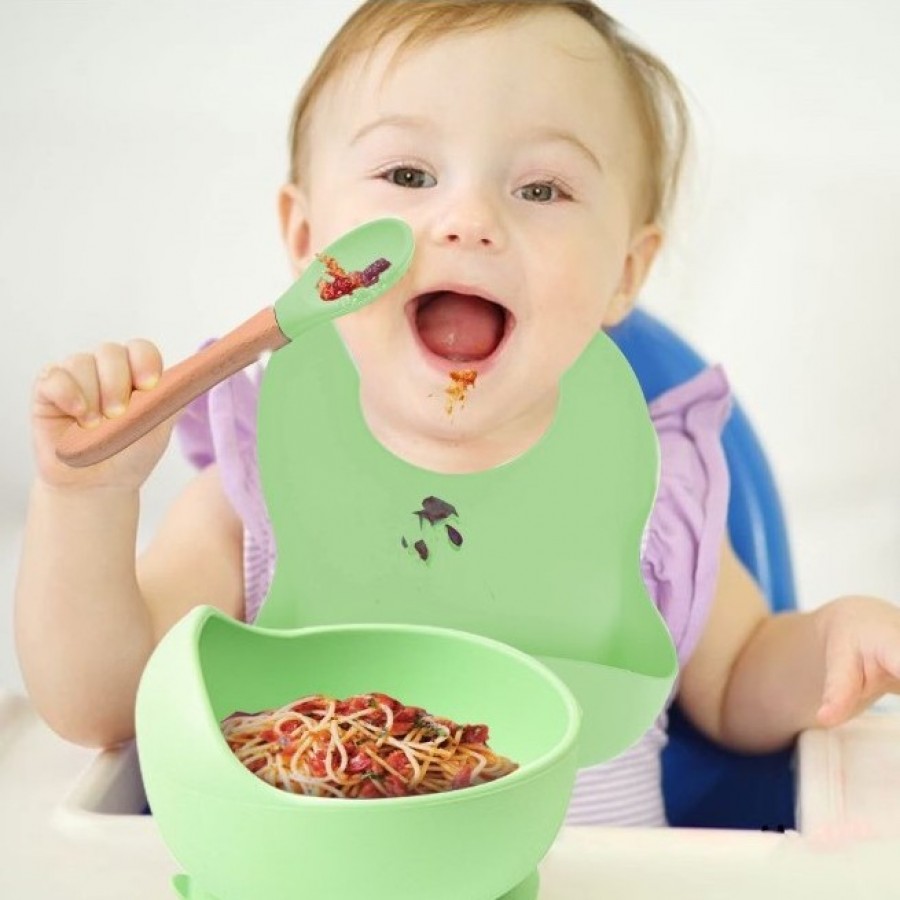 Set hranire bebe 8 piese, termorezistente, silicon, fara BPA, verde