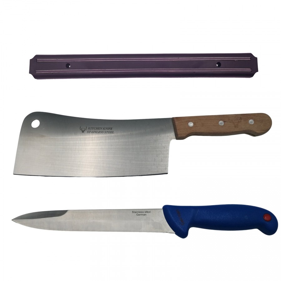 Set macelarie, satar, cutit si suport magnetic, otel inxodabil, multicolor