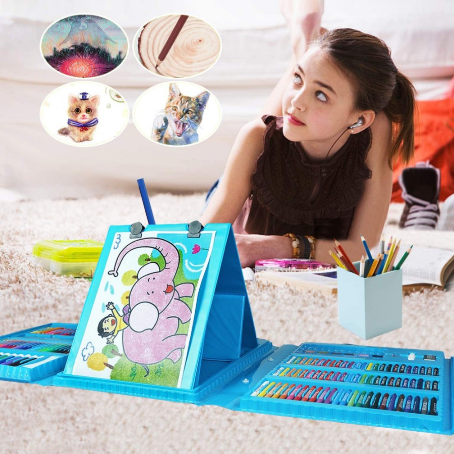 Set Pictura si Desen 208 Piese, Tip Servieta, Organizare, Copii 3-12 Ani, Set Complet, Albastru/Roz