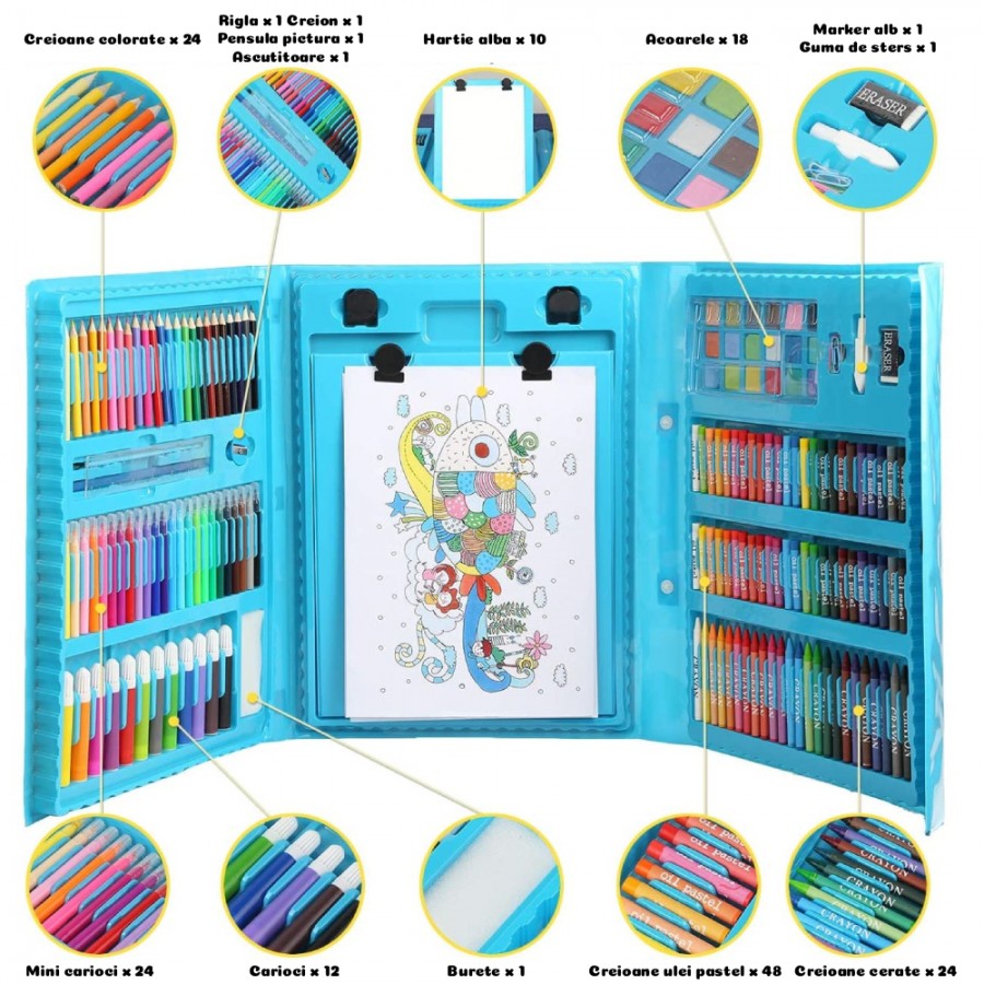 Etichete: Set Pictura si Desen 208 Piese, Tip Servieta, Organizare, Copii 3-12 Ani, Set Complet, Albastru/Roz, Jucarii și jocuri educative, Lumea Copiilor