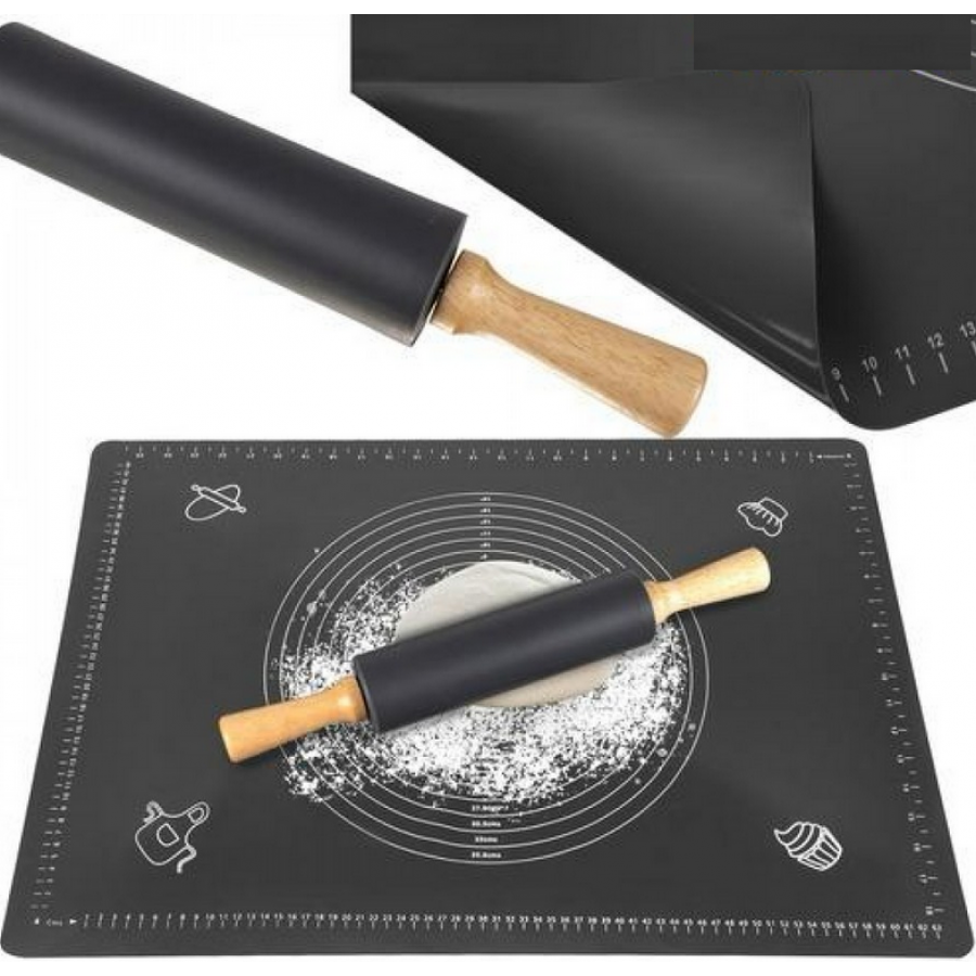 - Material de calitate alimentară: Placa e confecționată din silicon rezistent, ușor de curățat și durabil. Rola are mânere din lemn pentru manevrare comodă.