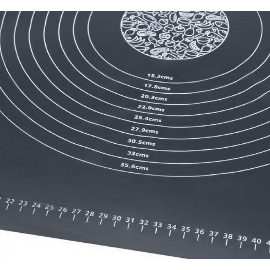 - Scale / grilaj imprimat pe placă: marcaje de lungime și diametru — ușurează întinderea uniformă a aluatului, fără să tot măsori cu rigla.
