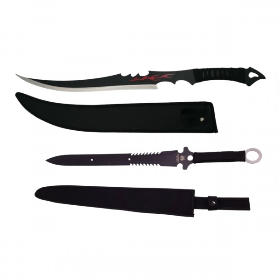 Set maceta si sabie de vanatoare, 54 cm, cutit de aruncat inclus