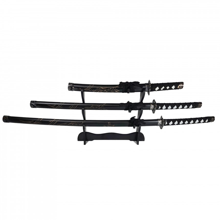 Etichete: Set sabii katane decorative panoplie, Ninja Warrior, negru, metal, 83 cm, teaca inclus