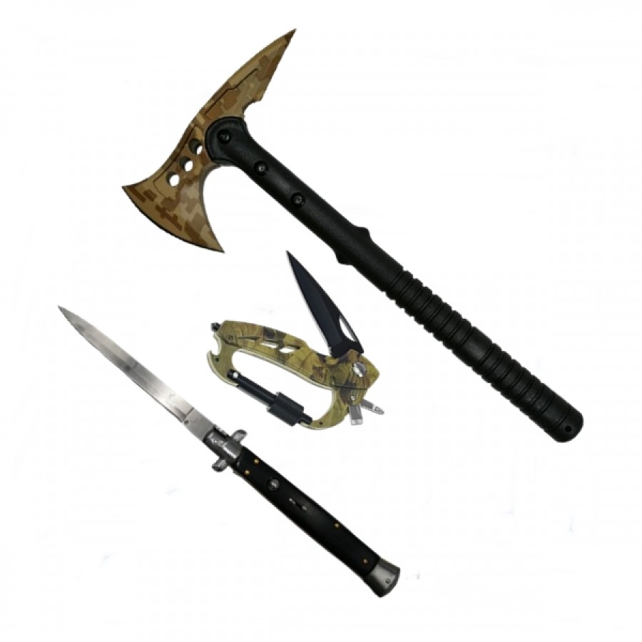 Set Topor, Carabina multifunctionala si Briceag automat, Otel, Negru