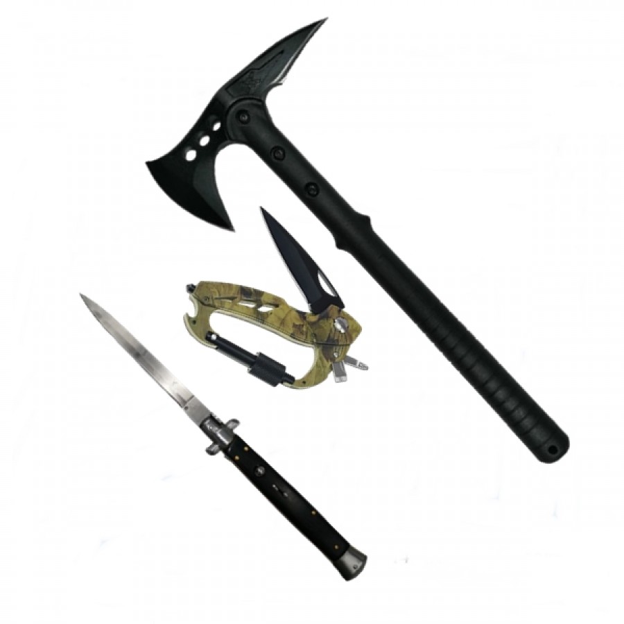 Set Topor, Carabina multifunctionala si Briceag automat, Otel, Negru